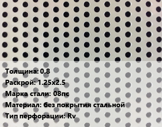 Лист перфорированный 0.8 1.25х2.5 Марка: 08пс без покрытия стальной Rv