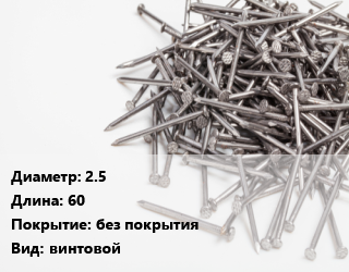 Гвоздь 2.5х60 без покрытия винтовой, чертеж 7811-7070,чертеж 7811-7335, кг цена от 85.11 ₽ / кг, где купить, условия доставки в Нижнем Новгороде и Нижегородской области