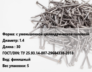 Гвоздь с уменьшенной цилиндрической головкой 1.4х30 ГОСТ: ТУ 25.93.14-007-29684338-2018 финишный 5