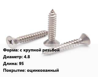 Саморез с крупной резьбой D=4.8 L=95 оцинкованный