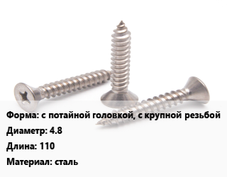 Саморез с потайной головкой, с крупной резьбой D=4.8 L=110 сталь, шт цена от 3.17 ₽ / кг, где купить, условия доставки в Нижнем Новгороде и Нижегородской области