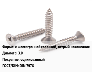 Саморез с шестигранной головкой, острый наконечник D=3.9 оцинкованный ГОСТ: DIN 7976
