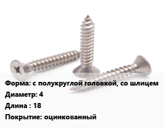 Саморез с полукруглой головкой, со шлицем D=4 L=18 оцинкованный, упаковка 10000 шт цена от 2 897 ₽ / кг, где купить, условия доставки в Нижнем Новгороде и Нижегородской области
