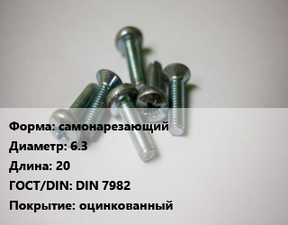 Винт самонарезающий 6.3х20 DIN 7982 оцинкованный