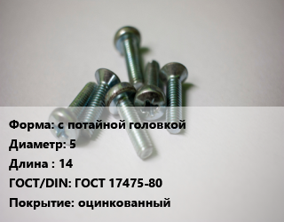 Винт с потайной головкой 5х14 ГОСТ 17475-80 оцинкованный