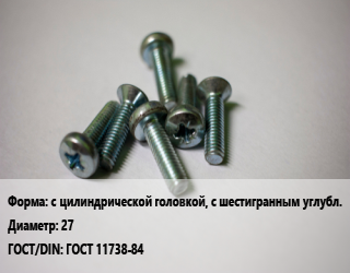 Винт с цилиндрической головкой, с шестигранным углубл. 27 ГОСТ 11738-84