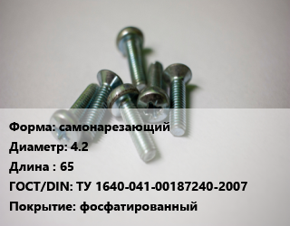 Винт самонарезающий 4.2х65 ТУ 1640-041-00187240-2007 фосфатированный