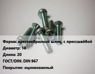 Винт крестообразный шлиц, с прессшайбой 10х20 DIN 967 оцинкованный