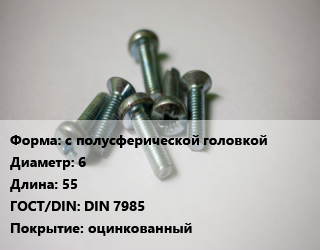 Винт с полусферической головкой 6х55 DIN 7985 оцинкованный