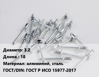 Заклепка 3.2х18 алюминий, сталь ГОСТ: ГОСТ Р ИСО 15977-2017