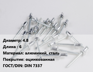 Заклепка 4.8х6 алюминий, сталь оцинкованная ГОСТ: DIN 7337