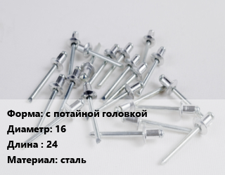 Заклепка с потайной головкой 16х24 сталь, шт цена от 84.85 ₽ / шт, где купить, условия доставки в Нижнем Новгороде и Нижегородской области