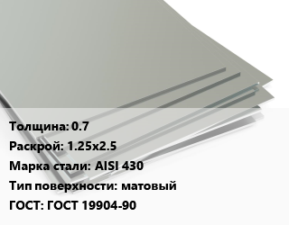 Лист нержавеющий 0.7 1.25х2.5 Сталь: AISI 430 Тип:матовый ГОСТ 19904-90, шт, х/к цена от 4 526 ₽ / т, где купить, условия доставки в Нижнем Новгороде и Нижегородской области