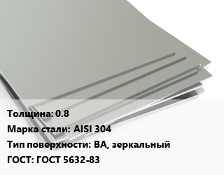Лист нержавеющий 0.8 Сталь: AISI 304 Тип:BA, зеркальный ГОСТ 5632-83, х/к, в пленке цена от 261 056 ₽ / т, где купить, условия доставки в Нижнем Новгороде и Нижегородской области