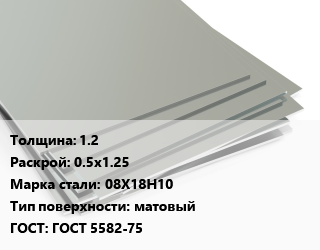 Лист нержавеющий 1.2 0.5х1.25 Сталь: 08Х18Н10 Тип:матовый ГОСТ 5582-75, шт цена от 5 058 ₽ / т, где купить, условия доставки в Нижнем Новгороде и Нижегородской области