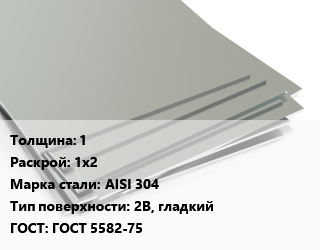 Лист нержавеющий 1 1х2 Сталь: AISI 304 Тип:2B, гладкий ГОСТ 5582-75, х/к, по запросу цена от 420 974 ₽ / т, где купить, условия доставки в Нижнем Новгороде и Нижегородской области
