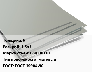 Лист нержавеющий 6 1.5х3 Сталь: 08Х18Н10 Тип:матовый ГОСТ 19904-90