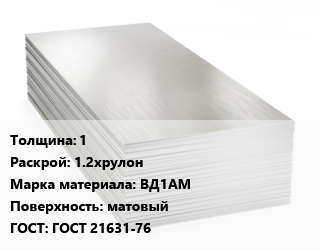 Алюминиевый лист 1 1.2хрулон Марка: ВД1АМ матовый ГОСТ: ГОСТ 21631-76, г/к, по запросу цена от 360 900 ₽ / т, где купить, условия доставки в Нижнем Новгороде и Нижегородской области